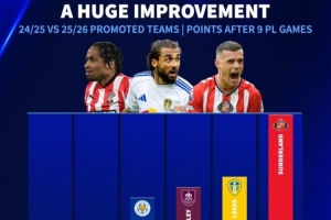 全文摘要:英超9轮战罢,升班马表现亮眼。桑德兰高居第二,伯恩利、利兹联紧随其后。三队总积分已超去年同期,扭转了此前升班马赛季末全部降级的颓势。本赛季升班马保级形势乐观,引发球迷热议。