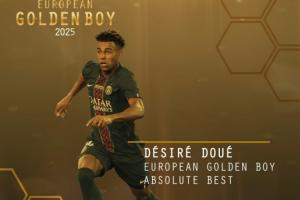 全文摘要:20岁的巴黎圣日耳曼前锋杜埃,在击败多位候选者后,荣膺2025年金童奖。他于2024年夏窗以5000万欧加盟,迅速帮助球队赢得欧冠等5座冠军,个人表现亮眼,德转身价已升至9000万欧元。