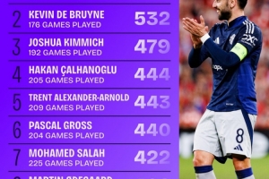 全文摘要:根据Squawka数据,自2019-20赛季以来,曼联中场B费以206场创造567次机会,位居五大联赛创造机会榜首位,领先德布劳内、基米希等球星。