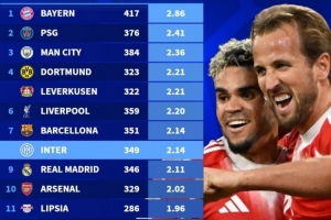 全文摘要:德国转会市场统计了五大联赛近5年场均进球榜。拜仁以2.86球高居榜首,展现恐怖攻击力。巴黎圣日耳曼(2.41)与曼城(2.36)分列二三位,多特蒙德与勒沃库森以2.21球并列第四,利物浦、巴萨等豪门紧随其后。